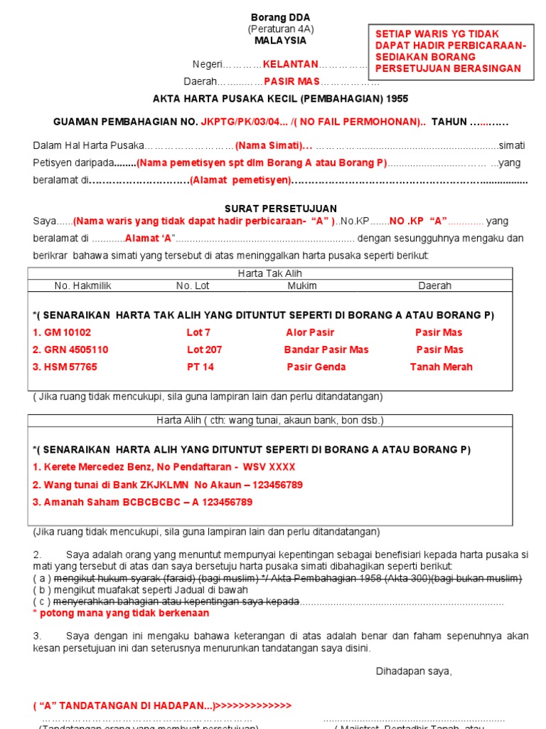 Borang DDA FORM DDA Regulation 4A MALAYSIA State of WILAYAH PERSEKUTUAN. 0 penilaian 0 menganggap dokumen ini bermanfaat 0 suara 529 tayangan 5 halaman. Kalkulator Faraid Majlis Agama Islam Selangor K-Faraid MAIS dicipta bagi memberikan panduan dan pendidikan kepada umat Islam tentang pembahagian harta pusaka mengikut Hukum Syarak.